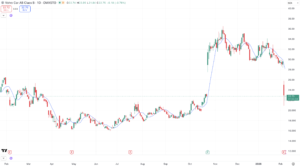 Het aandeel stond ruim 28% lager, terwijl een daling van meer dan 11,2% al een record zou betekenen. In de onderstaande grafiek zien we het koersverloop van Volvo Cars: