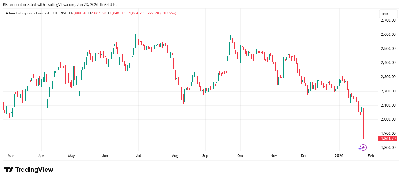 In de onderstaande grafiek zien we het koersverloop van Adani: