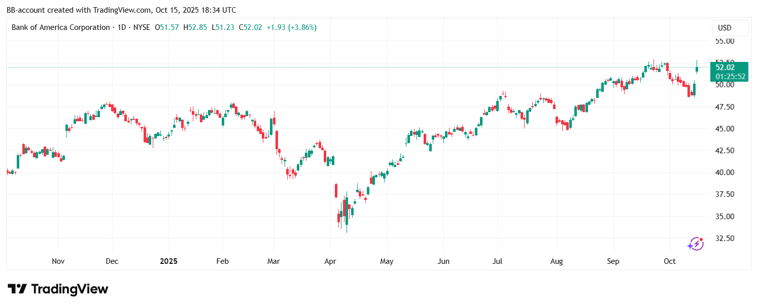 Bank of America heeft in het derde kwartaal beter dan verwacht gepresteerd, met een winststijging van 23% tot $8,5 miljard. De hogere inkomsten uit investment banking en gunstiger kredietontwikkelingen speelden hierbij een sleutelrol. Beleggers reageerden positief: het aandeel steeg bijna 5% in de voorbeurshandel.