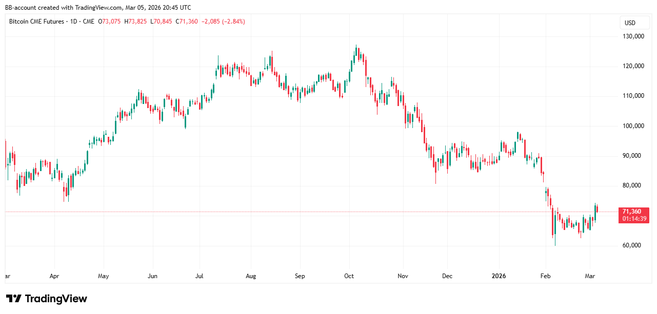 De instroom komt na weken van uitstroom uit bitcoin-ETF’s eerder dit jaar. Tegelijk steeg de bitcoinprijs richting $74.000 en noteerde de munt donderdag boven $73.000.