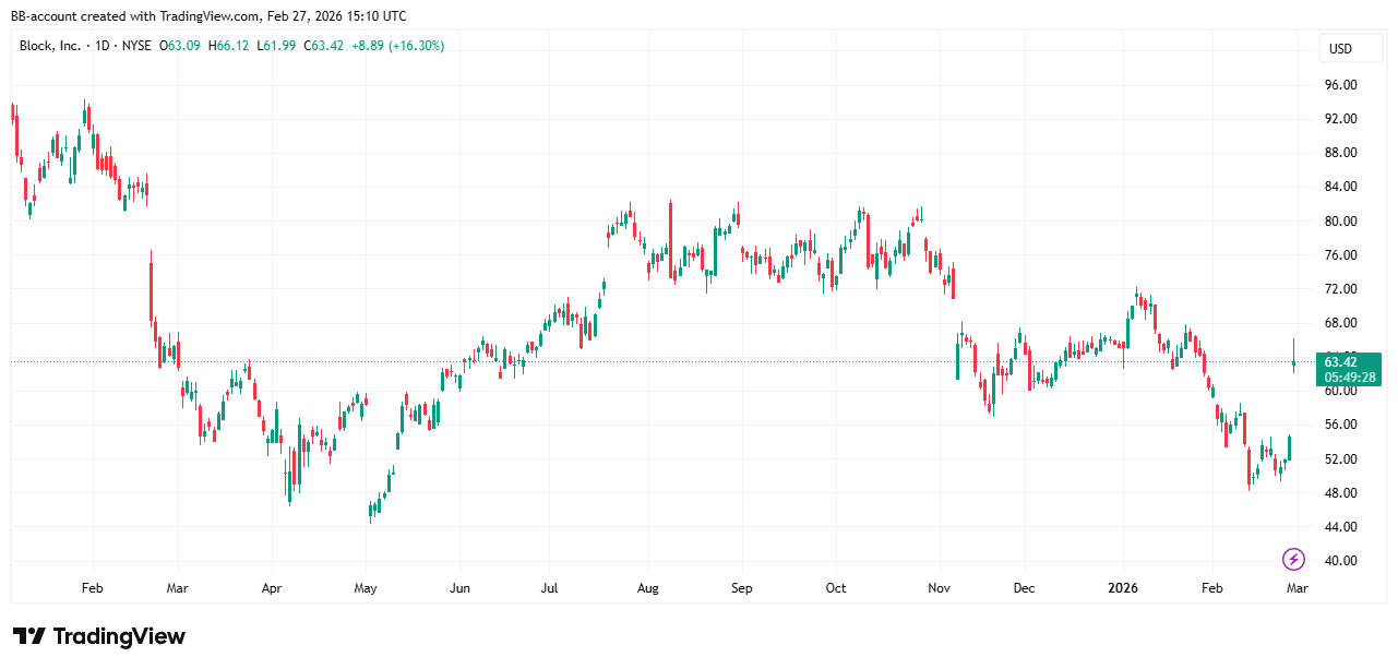 Block heeft aangekondigd meer dan 4.000 banen te schrappen, bijna de helft van het personeelsbestand, om efficiënter te werken met AI en de groei te versnellen. Beleggers reageerden positief, waardoor het aandeel tot 24% steeg in de nabeurshandel. De reorganisatie moet de kosten verlagen en de winstgevendheid op lange termijn versterken.