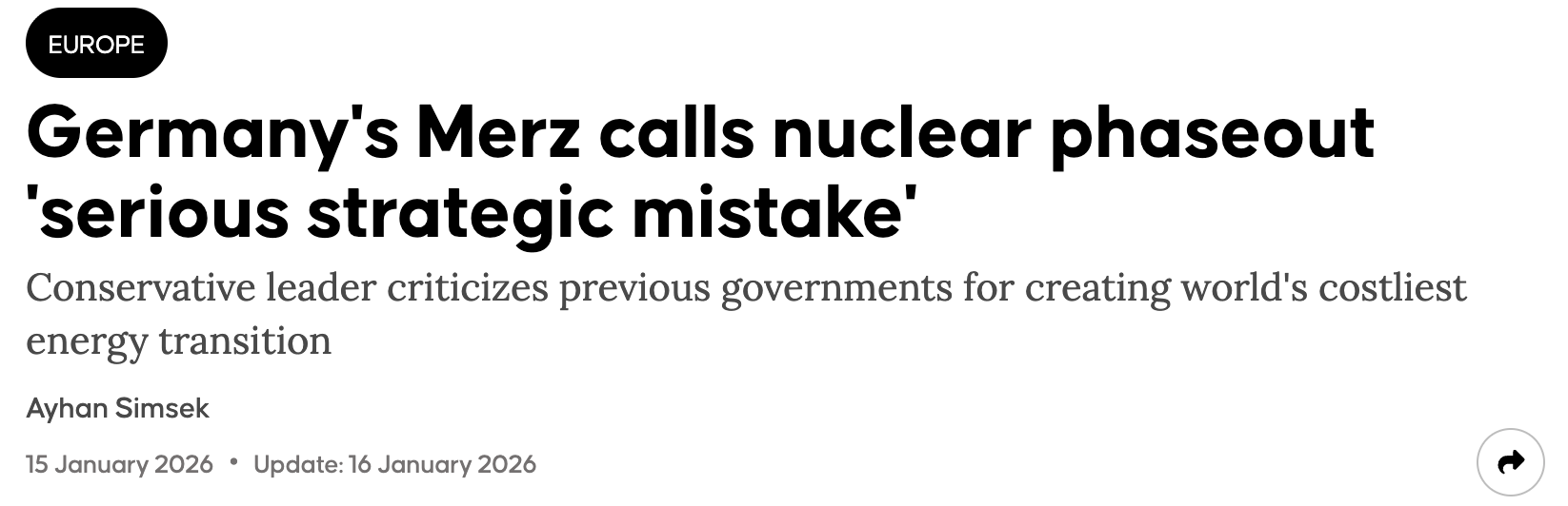 Duitsland is nu – slechts 3 jaar later – de eerste om toe te geven dat het een monumentale fout was om afscheid te nemen van uranium.