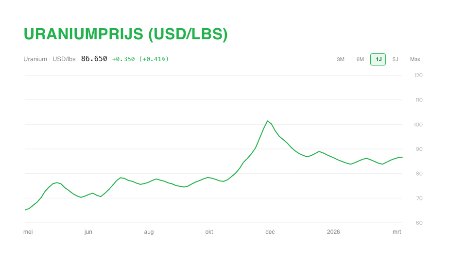 De structuur van de uraniummarkt maakt alleen dat een aanbodtekort van deze omvang zichzelf niet binnen vijf jaar corrigeert. De enige variabele die snel kan bewegen is de prijs.