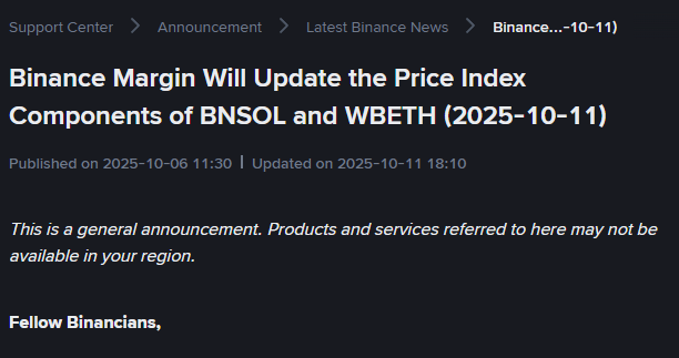 Tijdens de crash ging dit systeem catastrofaal de fout in. Het oracle van Binance baseerde de waarde van bepaalde activa, zoals wBETH (een variant van Ethereum), BNSOL (een variant van Solana) en de stablecoin USDe, bijna volledig op de live handelsprijs op Binance zelf. Volgens de analyse van YQ zette een relatief kleine verkooporder van 60 miljoen dollar op deze specifieke munten een fatale kettingreactie in gang.