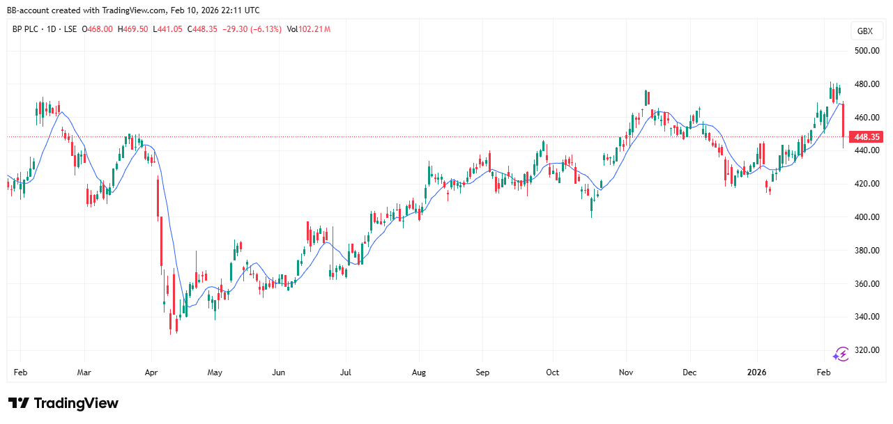 In de onderstaande grafiek zien we het koersverloop van BP: