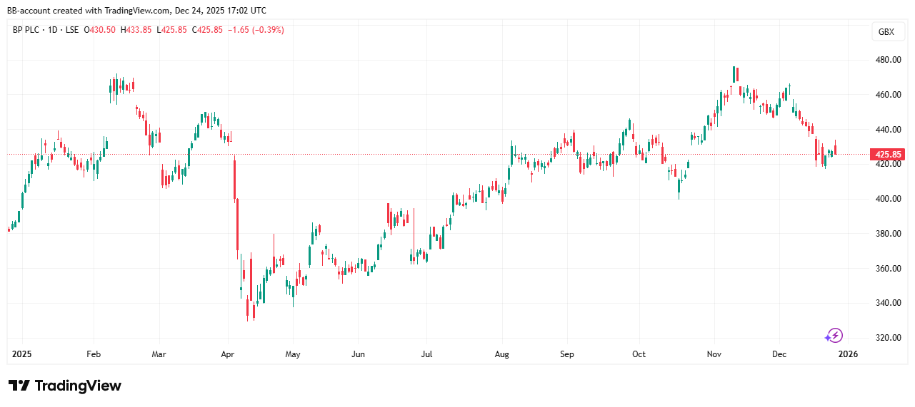 In de onderstaande grafiek zien we het koersverloop van BP:
