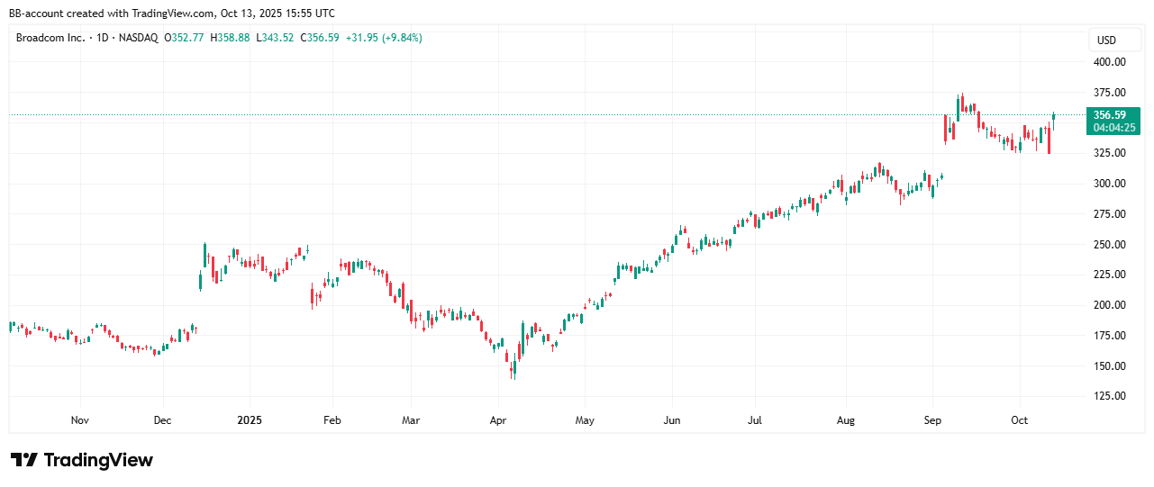 De samenwerking met OpenAI gaf Broadcom-aandelen een stevige impuls van 9%. Beleggers reageerden enthousiast op het nieuws dat beide bedrijven 10 gigawatt aan aangepaste AI-chips gaan ontwikkelen.