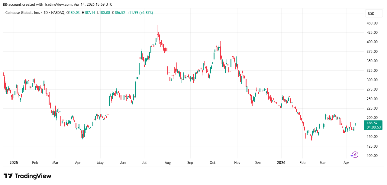 Het aandeel van Coinbase daalde met ongeveer 26% sinds de piek in maart. Daarmee werden eerdere koerswinsten uit het eerste kwartaal grotendeels uitgewist.