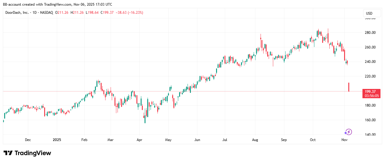 DoorDash zag zijn aandelen met 19% dalen na tegenvallende kwartaalresultaten en hogere geplande uitgaven voor technologische upgrades in 2026. Het Amerikaanse fooddeliverybedrijf rapporteerde een lager nettoresultaat dan verwacht en verwacht dat de acquisitie van het Britse Deliveroo minder zal bijdragen aan de winst. CEO Tony Xu benadrukt dat extra investeringen nodig zijn om groei en efficiëntie op lange termijn te realiseren.