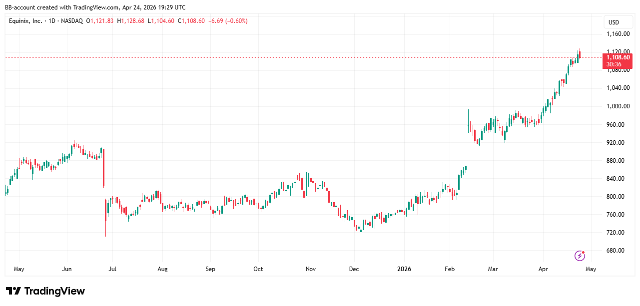 De investering onderstreept de rol van Zuid-Afrika als belangrijke digitale hub op het continent. In de onderstaande grafiek zien we het koersverloop van Equinix, dat dit jaar al zo’n 45% hoger staat: