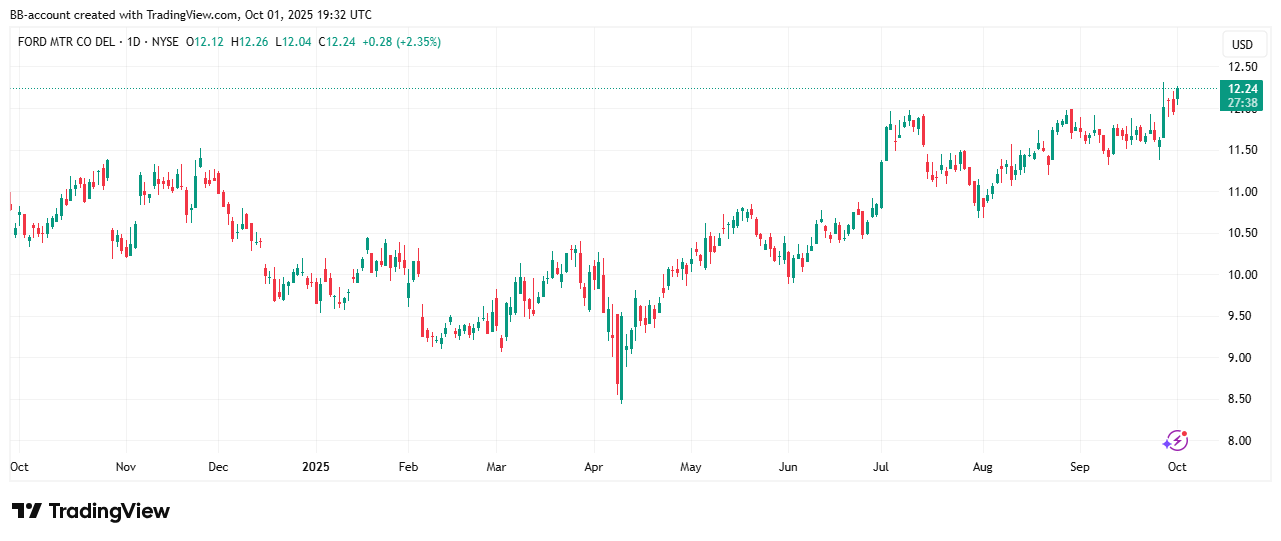 In de onderstaande grafiek zien we het koersverloop van Ford: