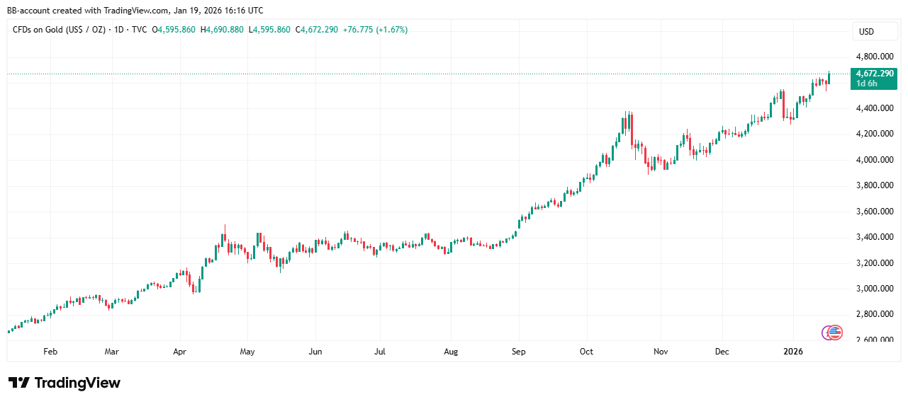Goud en zilver zijn naar nieuwe recordniveaus gestegen nu beleggers kiezen voor veilige havens. Aanleiding zijn oplopende geopolitieke spanningen en dreigende Amerikaanse importtarieven tegen Europa. Deze onzekerheid zet druk op risicovolle activa, zoals Europese auto- en luxeaandelen.