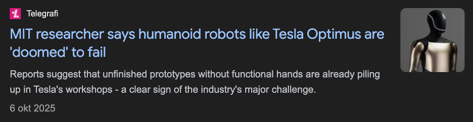 Dat maakt investeren in dit klimaat ook juist zo interessant. Veel beleggers geloven er nog niet echt in en de media is er als de kippen bij om de robots belachelijk te maken.