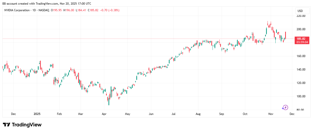 In de onderstaande grafiek zien we het koersverloop van Nvidia: