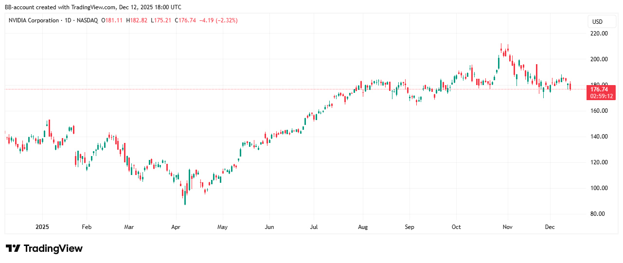 In de onderstaande grafiek zien we het koersverloop van Nvidia: