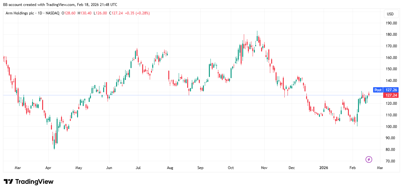 In de onderstaande grafiek zien we het koersverloop van Arm, dat licht hoger sprong: