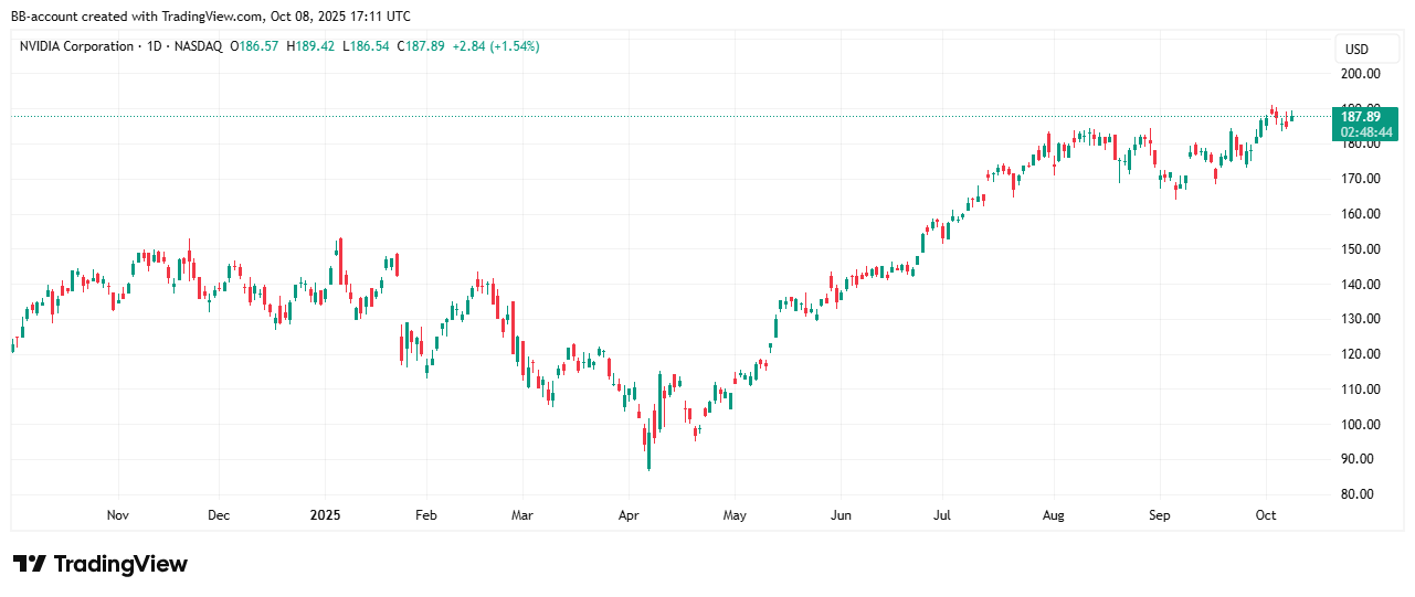 In de onderstaande grafiek zien we het koersverloop van Nvidia: