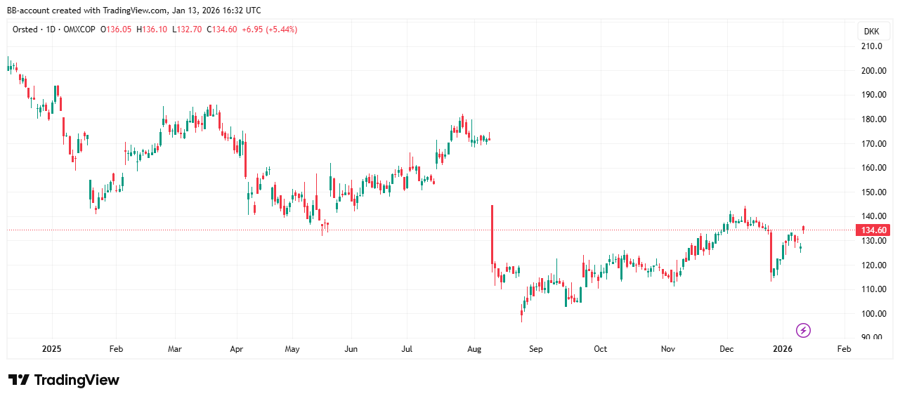 In de onderstaande grafiek zien we het koersverloop van Ørsted: