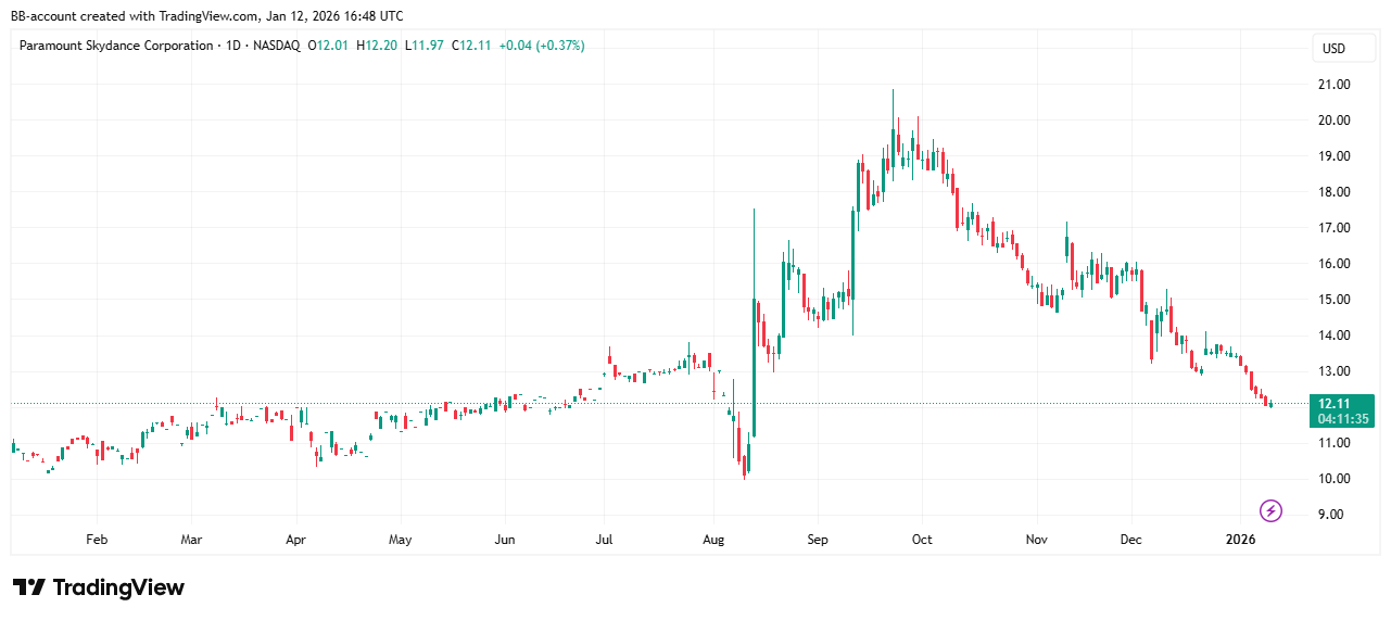 In de onderstaande grafiek zien we het koersverloop van Paramount: