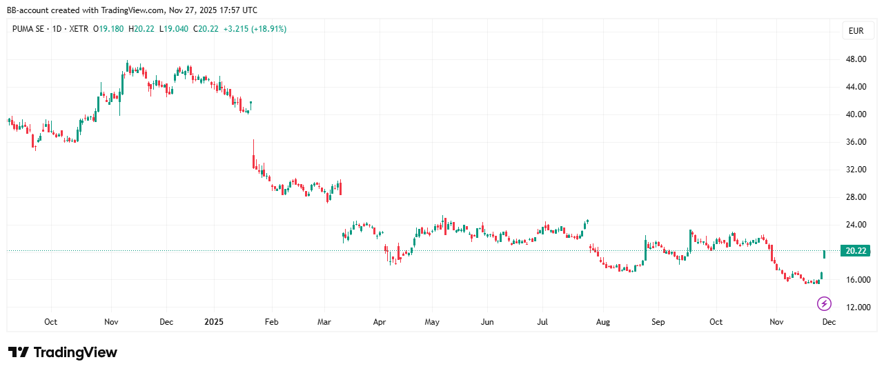 Puma verlaagde eerder zijn verwachtingen voor 2025 naar een dubbelcijferige omzetdaling. Het bedrijf rekent bovendien op een operationeel verlies door de impact van Amerikaanse tarieven.