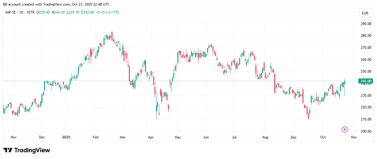De Duitse softwaregigant SAP heeft de analistenverwachtingen voor het derde kwartaal nipt gemist, maar ziet zijn omzet uit cloud- en AI-diensten sterk toenemen. Volgens CEO Christian Klein is kunstmatige intelligentie de belangrijkste reden waarom klanten nieuwe contracten afsluiten, waardoor al 85% van de verwachte omzet voor 2026 is vastgelegd.