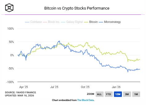 Ondanks de stijgende bitcoinvoorraad noteert Strategy’s aandeel tot nu toe dit jaar 69% lager ten opzichte van de piek in 2025, terwijl de mNAV rond 0,98 ligt.