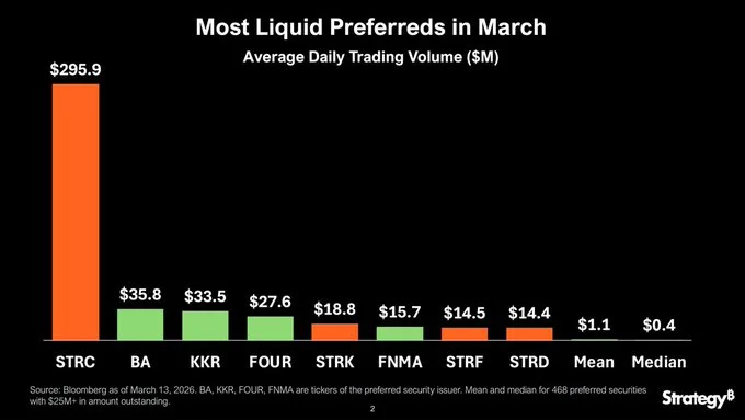 STRC wordt door analisten gezien als meer dan een financieringsinstrument voor bitcoin. Saylor merkte ook op dat STRC momenteel het meest liquide preferente aandeel op de markt is: