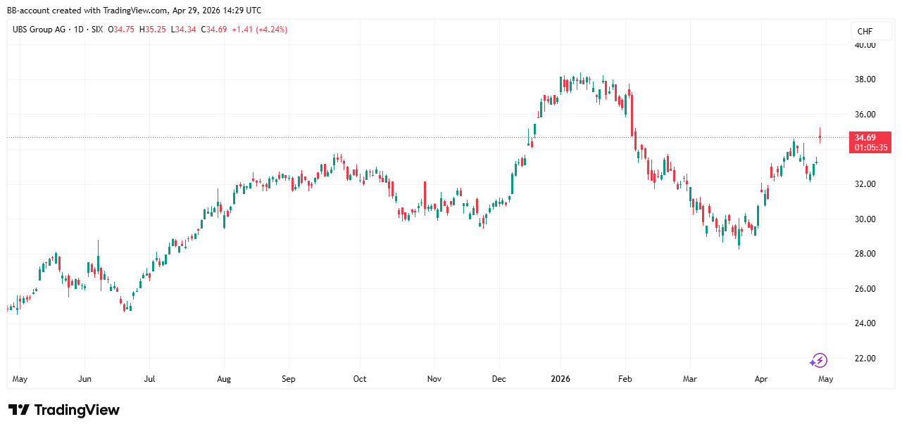 UBS heeft in het eerste kwartaal een nettowinst van 3 miljard dollar gerealiseerd, een stijging van 80 procent op jaarbasis en boven de verwachtingen van analisten. De sterke prestaties werden gedragen door groei in vermogensbeheer, kapitaalmarkten en alternatieve beleggingen, terwijl de bank ook haar aandeleninkoopprogramma voortzet. Beleggers reageerden positief op de cijfers, wat resulteerde in een koersstijging van meer dan 5 procent.