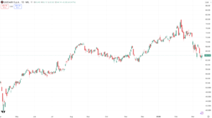 In de onderstaande grafiek zien we het koersverloop van UniCredit: