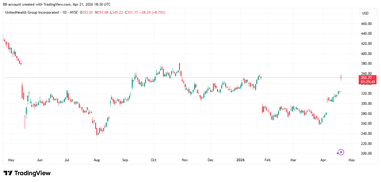 Het aandeel steeg circa 8% na publicatie. In de onderstaande grafiek zien we het koersverloop van United health: