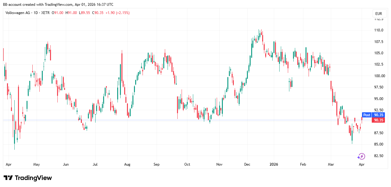 In de onderstaande grafiek zien we het koersverloop van Volkswagen: